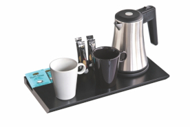 Plateau TRENDY COURTOISY bois noir et bouilloire Inox